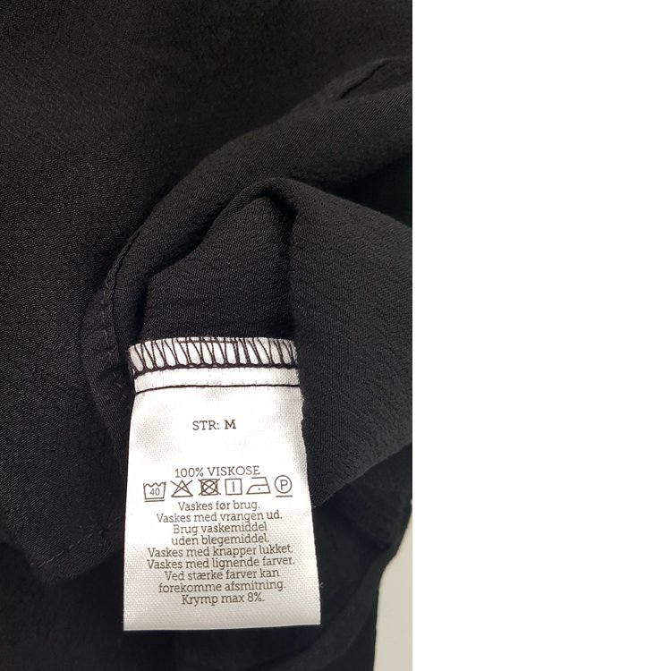 Czarna klasyczna bluzka z krótkim rękawem, z tyłu zapięcie na guzik, dół wykończony półokrągło. Uniwersalny basic z przyjemnej, lejącej wiskozy, sprawdzi się w każdym zestawieniu.