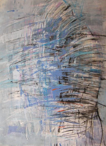Praca wykonana w technice mieszanej (farba, tusz, węgiel, ołówek) na papierze.
