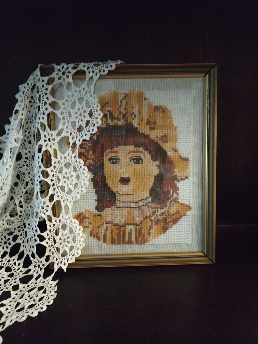 #haftowany obrazek vintage,