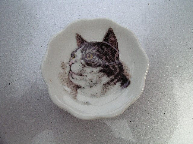 Mini talerzyk-spodeczek z Kotkiem :) Porcelanowy, sygnowanyBONE CHINA BRITISH MADE., . Do zakochania :)