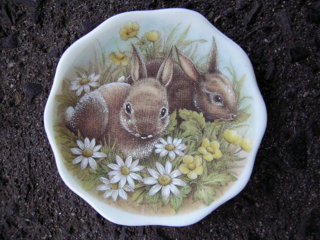 Mini talerzyk-spodeczek z uroczymi Króliczkami ) Porcelanowy,nie sygnowany.