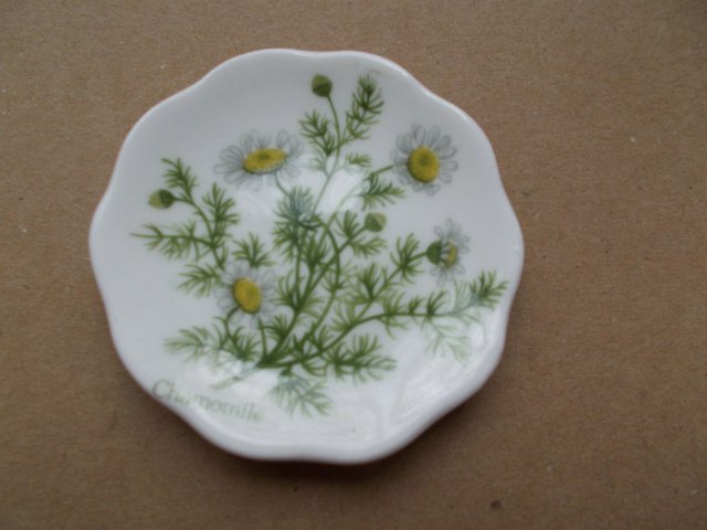 Mini talerzyk-spodeczek z uroczym widoczkiem :) Rumianek wielce urodziwy ;)