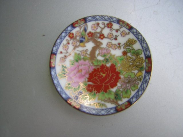 Mini talerzyk-spodeczek z pięknie barwną orientalną malaturą :) Porcelanowy, nie sygnowanyania :) Bogate zdobienie, delikatne złote kontury, wzór Imari w miniaturze;) Wykończenie błyszczące. Rzadko spotykany.