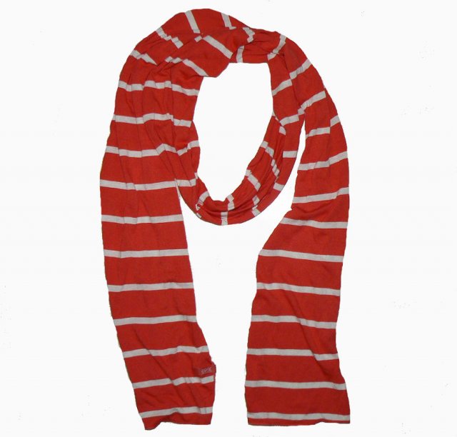 Szalik szwedzkiej marki Cecil. Czerwony w białe paseczki.
