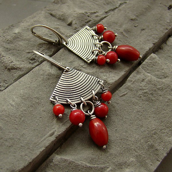 Efektowe i oryginalne kolczyki wykonane w całości z oksydowanego srebra próby 925 oraz oliwek korala wielkości 1,2 cm oraz 6 mm i 4 mm kulek korala. Rozpiętość kolczyków to 2,2 cm, a całkowita długość kolczyków to 5,2 cm. Ozdobnie zapakowane.