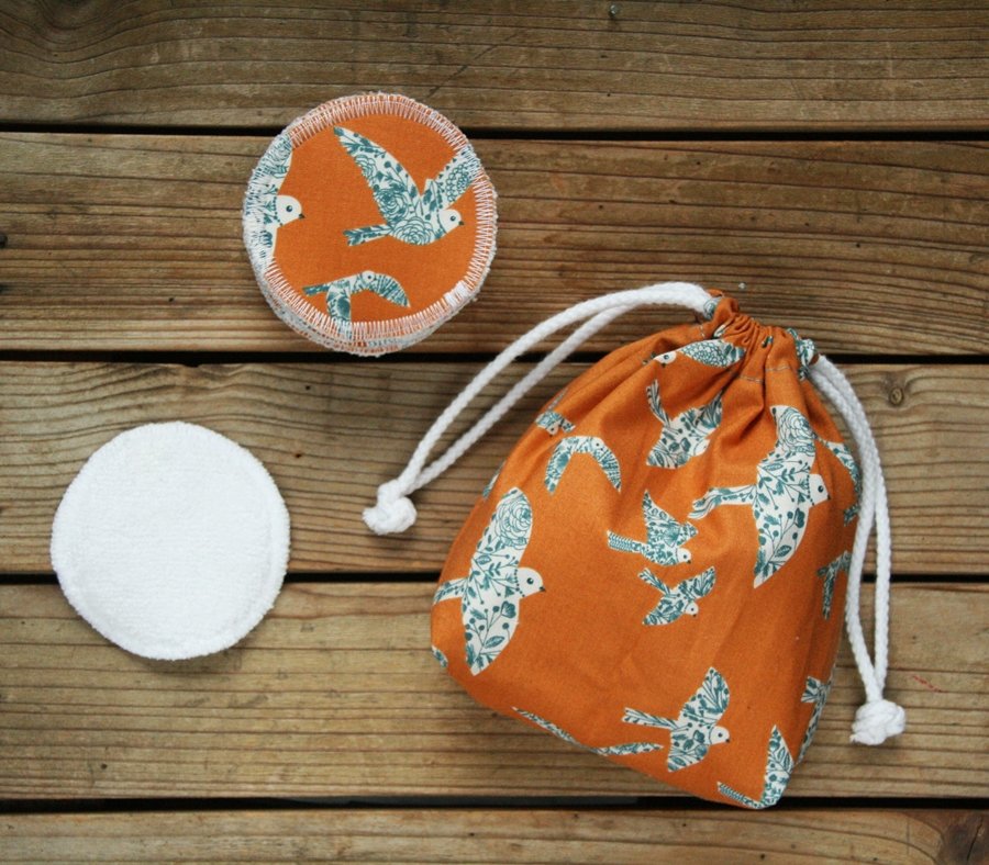 Jako, że idea less/zero waste jest nam bardzo bliska, wprowadzamy zestawy wielorazowych wacików do przemywania twarzy czy zmywania makijażu. W zestawie jest 10 wacików uszytych ze skrawków bawełnianych oraz podwójnej warstwy chłonnej tkaniny bambusowej typu frotte (polski producent). Waciki składają się z 3 warstw i mają średnicę ok. 8cm. Zapakowane są w woreczek (14x17x5cm), który zarówno świetnie sprawdzi się do przechowywania ich w łazience, jak i w podróży.
