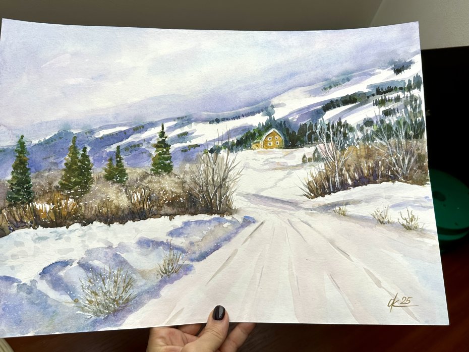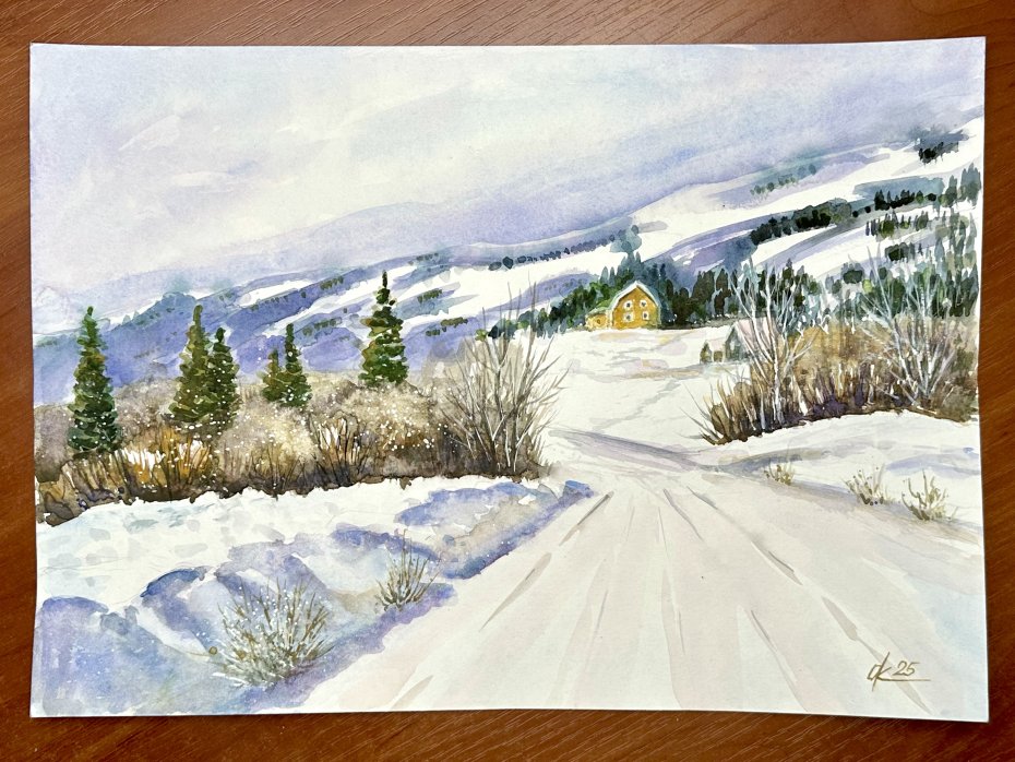 Rozmiar: 42/30 cm. Data założenia: 2025. Rysunek wykonany akwarelami na wysokiej jakości papierze. Oryginał, sygnowany.