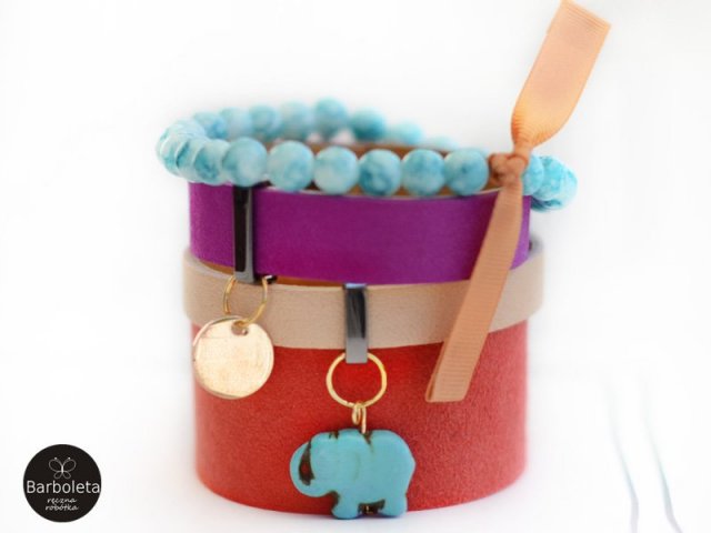 3 bransoletka w odcieniu koralowym z włoskiego zamszu.