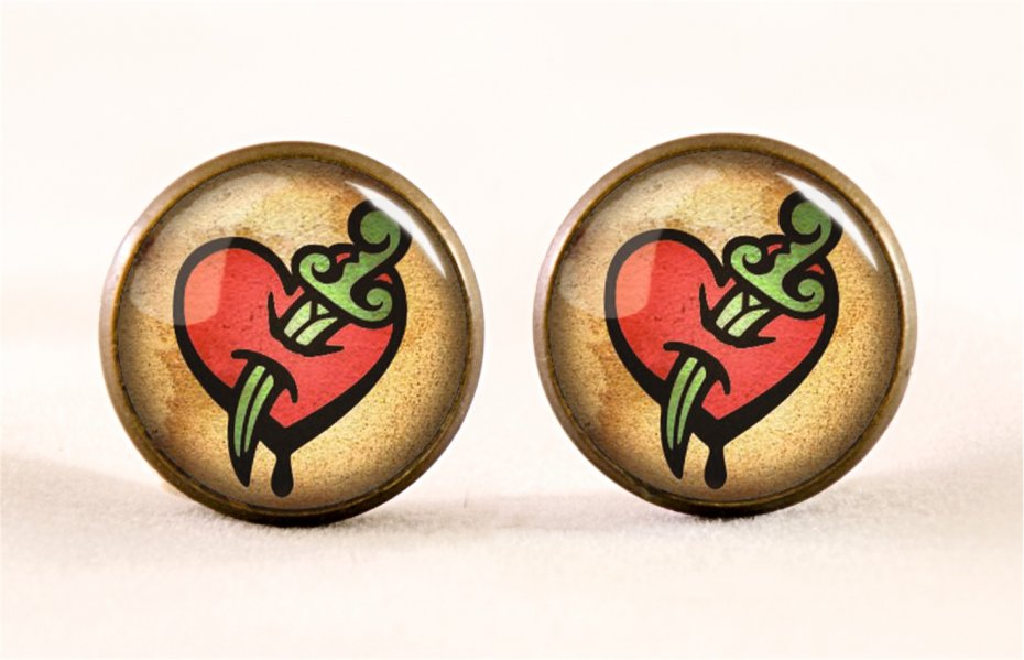 Ręcznie robione kolczyki sztyfty z wysokiej jakości grafiką pokrytą wypukłym, powiększającym szkiełkiem.