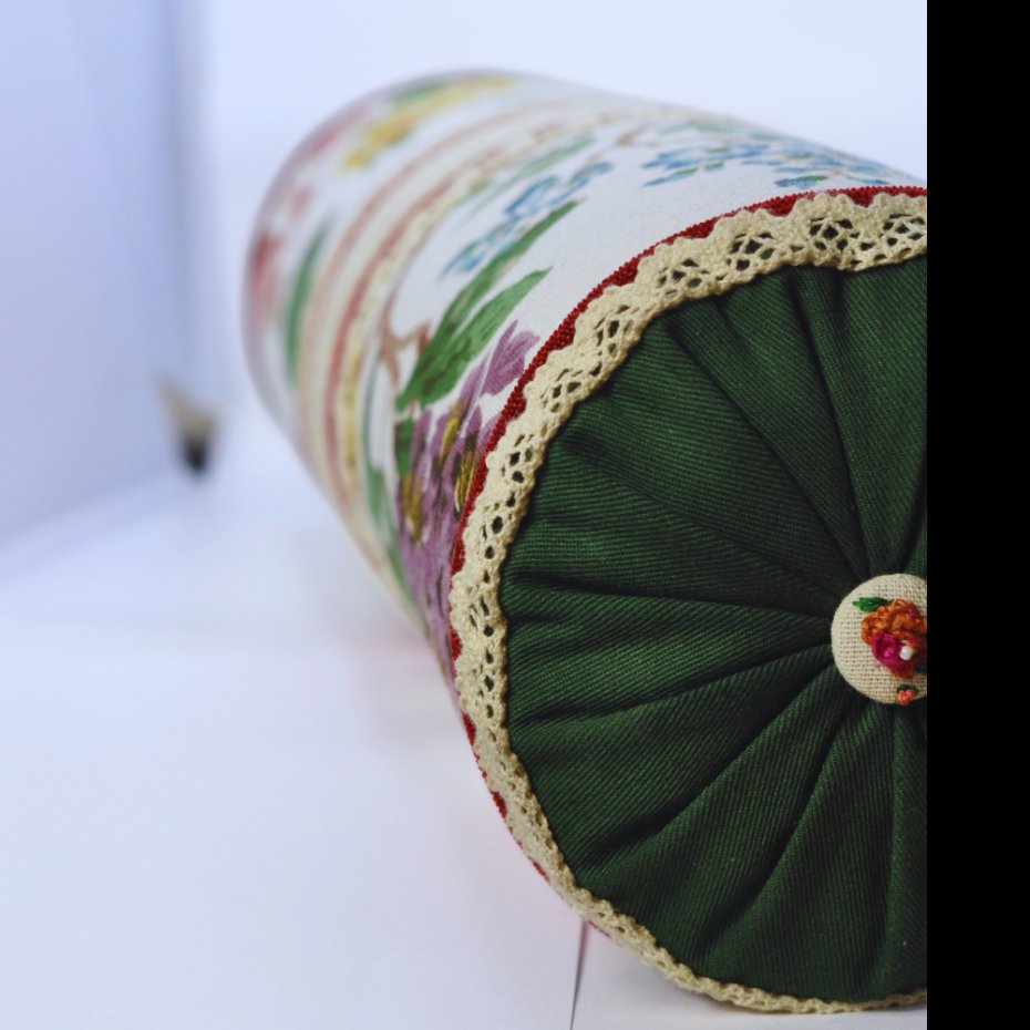Ręcznie wykonany wałek tapicerski – poduszka w stylu vintage