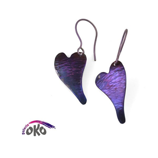 Kolczyki wykonane są z anodowanego tytanu i zawieszone na hipoalergicznych biglach. Na odwrocie sygnowane wygrawerowanym autografem,Długość z zawieszką 3,8 cm i szerokość 1,5 cm.Tytan jest niezwykle lekkim i trwałym metalem który nie wywołuje żadnych alergii-jest hipoalergiczny-stosowany w chirurgii i stomatologii. Odporny na działanie chemikaliów.