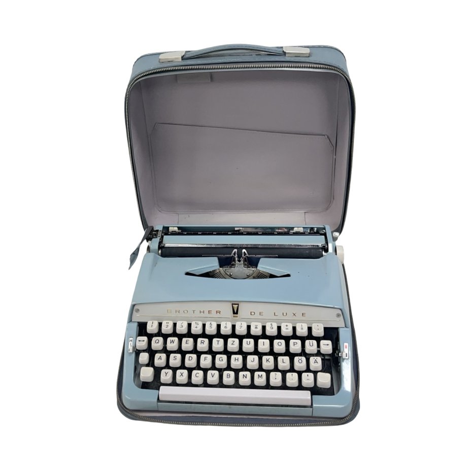 Klasyczna, mechaniczna maszyna do pisania Brother De Luxe, wyprodukowana w Japonii. Model ten był jednym z najbardziej popularnych i cenionych na rynku europejskim i światowym w drugiej połowie XX wieku, znanym z niezawodności, solidnej konstrukcji oraz charakterystycznego, ponadczasowego wzornictwa.