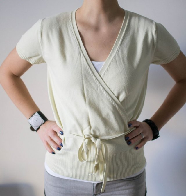 Kardigan z krótkim rękawem. Jasny waniliowy kolor. Rarytas dla wielbicieli pasteli ;)