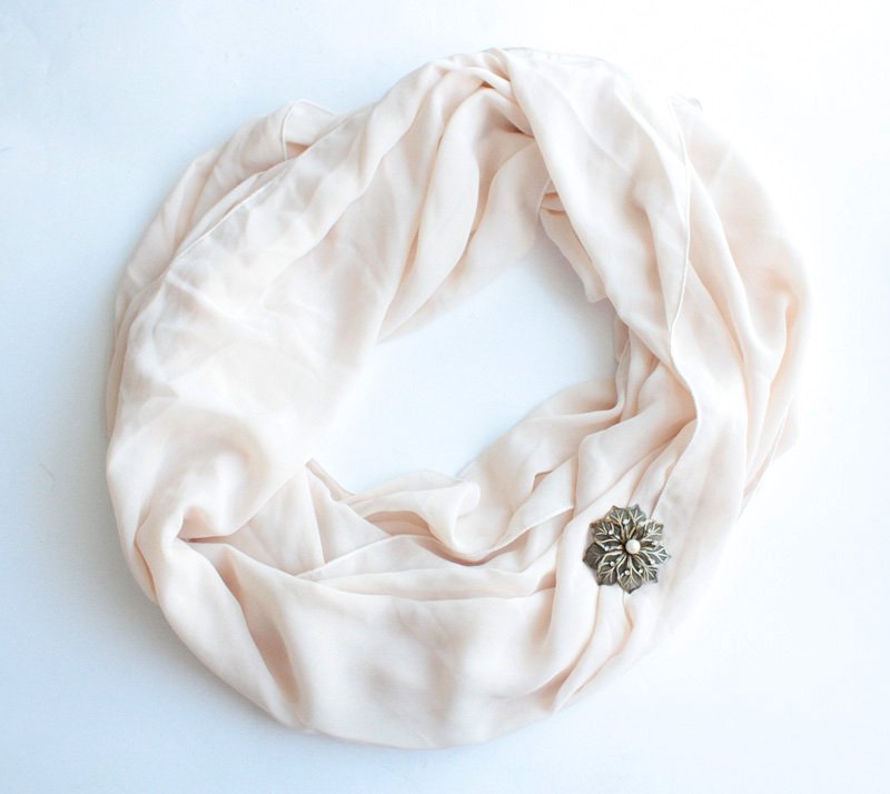 Niezwykly, elegancki szal wykonany prawdopodobnie z jasnobeżowej (na pograniczu ecru) póltransparentnej żorżety.