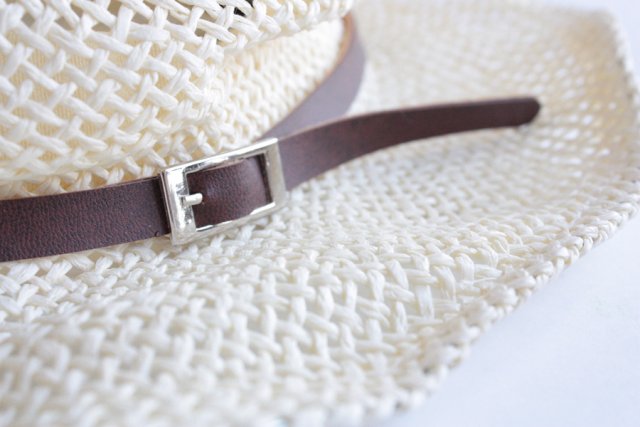 Kremowy kapelusz z paseczkiem duńskiej firmy WANNABES z naturalnego plecionego włókna. W brzeg kapelusza wciągnięty jest drucik, dzięki czemu rondo nie opada.