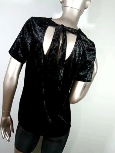 Skład tkaniny wg metki - poliester, elastan - mięsisty rozciągliwy aksamit.