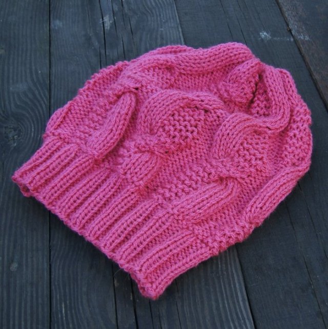 Czapa wykonana ręcznie na drutach z dobrej jakości francuskiej włóczki 30% wełna, 70% akryl), ciepła i przyjemna w dotyku.
