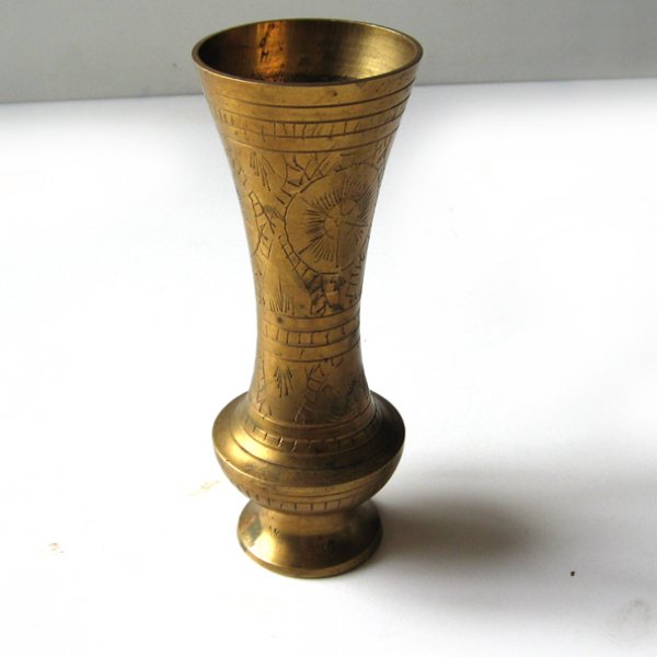 Piękny, klasyczny wazon, wykonany z mosiądzu, zdobiony delikatnym szlaczkiem na całej powierzchni. Prosty, aczkolwiek wyrazisty dodatek dla wnętrza, polecam