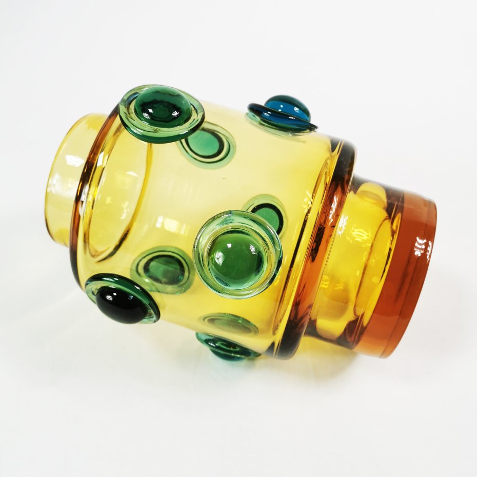 Wykonany z grubego, ręcznie formowanego szkła.