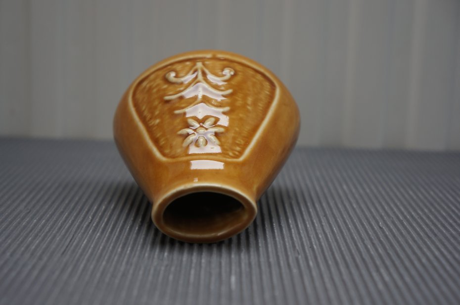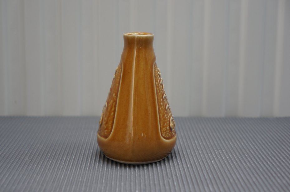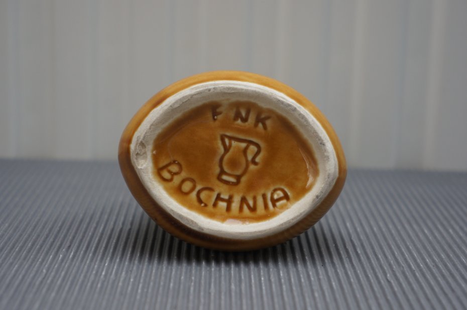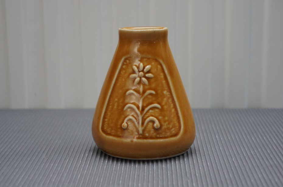 Śliczny wazonik z Fabryki Naczyń Kamionkowych w Bochni. Szkliwiony. Dekoracja kwiatowa - szarotka alpejska. Vintage - lata 70. ubiegłego wieku. Stan bardzo dobry.