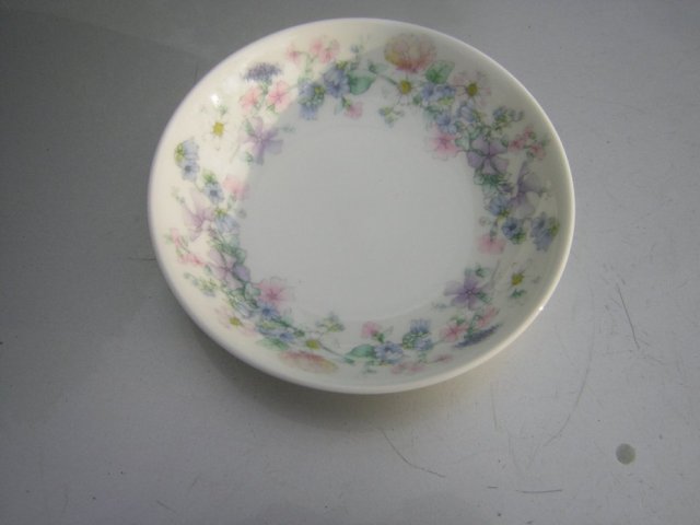 Niewielka Miseczka - Talerzyk ze szlachetnej porcelany, sygnowany jakością WEDGWOOD Bone China Made in England - z kolekcjonerskiej serii ANGELA o pastelowym, kwiatowo-motylim zdobieniu. Ryflowany, na jedwabiście błyszcząco szkliwiony. Elegancko i na miękko kobiecy :)