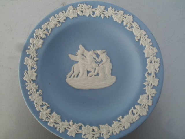 Kolekcjonerski talerzyk z biskwitowej szlachetnej porcelany angielskiej, sygnowany jakością Wedgwood. Seria Blue Jasper, z klasycystycznymi motywami w zdobieniach. Porcelana biskwitowo matowa, niezwykle przyjemna, z wypuklymi, fakturowymi białymi wzorami. Dół 5,5; góra 11; wys. 1 cm. Stan zachowania bardzo dobry. Wartość kolekcjonerska.