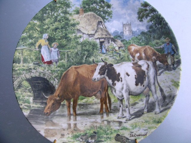 Porcelanowy talerz dekoracyjny z limitowanej, kolekcjonerskiej serii Życie na Farmie, z autorskimi malaturami autorstwa Johna Chapmana. Talerz indywidualnie sygnowany 9931 D. Notowany na międzynarodowej liście Bradex pod no.26-W90-35.6 . Edycja z 1989 roku, jakość z manufaktury Wedgwood. Jedwabiste błyszczące szkliwienie. 20,5 x 3 cm. Z tyłu profesjonalny uchwyt do powieszenia. Stan zachowania bardzo dobry.
