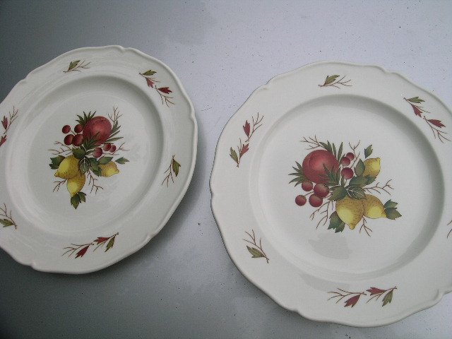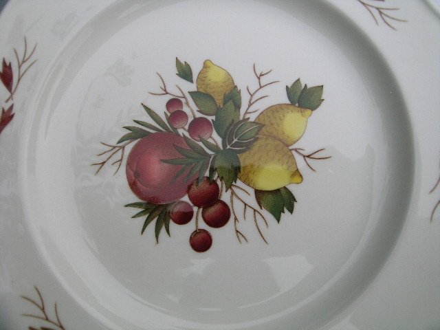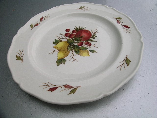 Talerz sygnowany WEDGWOOD of Etruria & Barlaston Made in England.z serii DRURY LANE. Porcelana w kolorze ecru na błyszcząco wykończona . Rant falbankowy ,ryflowany. Smakowite zdobienie w stonowanych,jesiennych barwach. Smakowity,użytkowy,ozdobny.