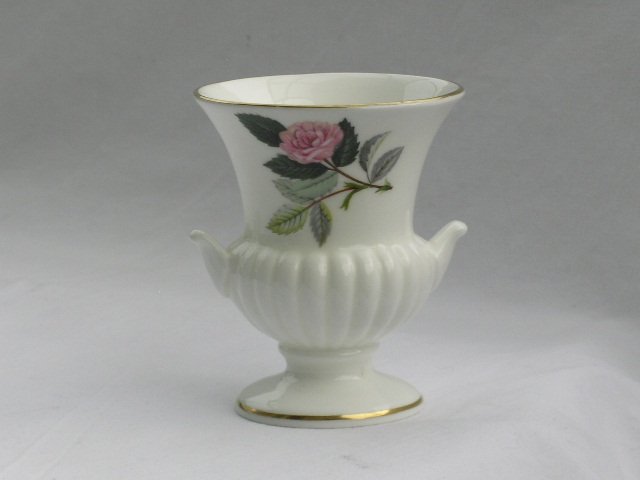 Porcelanowy wazon od Wedgwooda - z kolekcjonerskiej i poszukiwanej serii z pięknymi różami. Najwyższa jakość i klasa prześwitującej porcelany w ciepłej bieli. Ciekawy, klasyczny kształt. Delikatne ryflowanie i złocenia. Dół 5; góra 7; wys. 8,5 cm. Stan zachowania bardzo dobry. Fantastyczny do np. kominkowej ozdoby, do kolekcji i na prezent :)