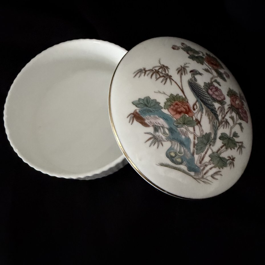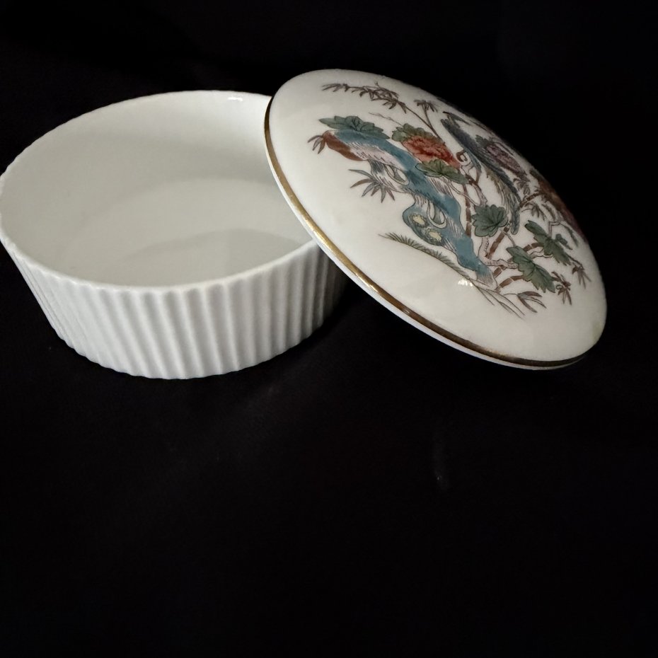 Najwyższej jakości porcelana kostna , puzderko o średnicy 9,2 cm wys 3,7 pięknie zdobione ręcznie malowane , delikatna cieniutka porcelana brzeg puzderka karbowany .