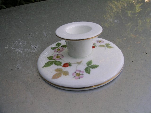 Szlachetnie porcelanowy Świecznik sygnowany WEDGWOOD Bone China Made in England z serii WILD STRAWBERRY. Piękna,ciepła biel porcelany, delikatne poziomkowe zdobienie,szczypta złota. Praktyczny i wielce urodziwy :)