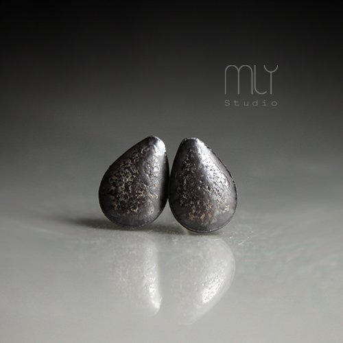 Ceramiczne kolczyki w formie sztyftów, ręcznie wykonane z delikatnej czekoladowobrązowej gliny kamionkowej, jednostronnie szkliwione czarnych matowych szkliw z efektem plamek, na antyalergicznych sztyftach w kolorze srebrnym. Długość ok. 13mm. Polecam