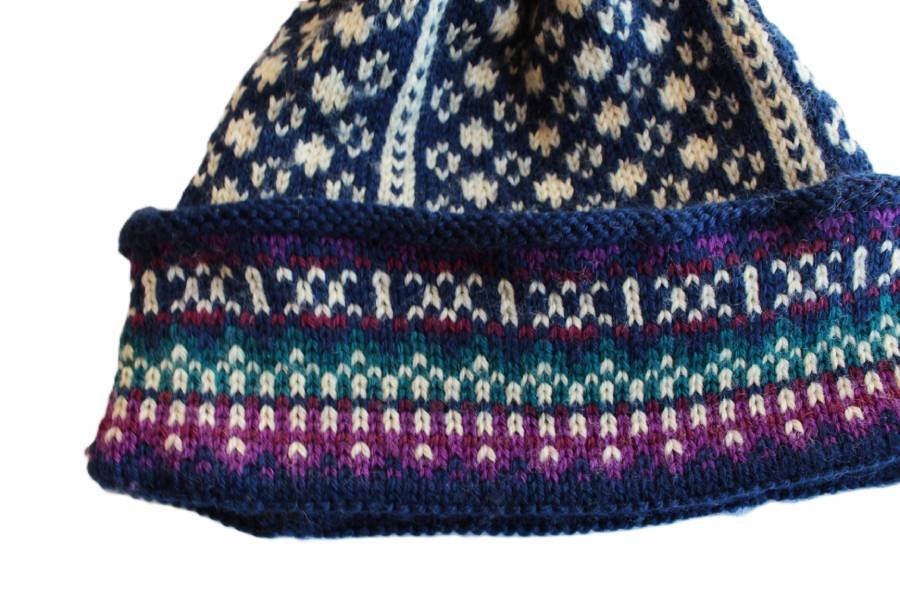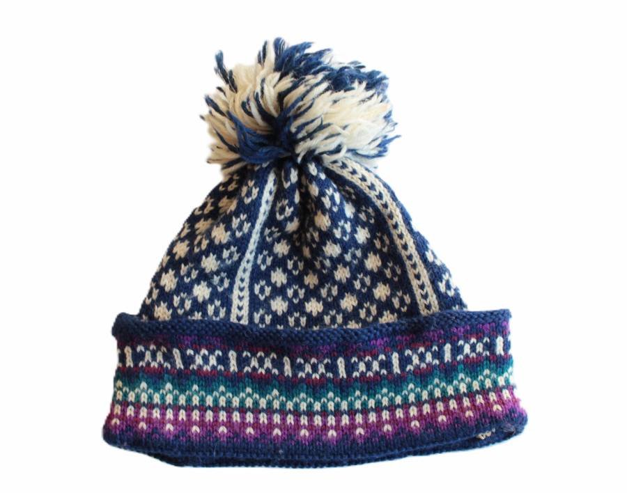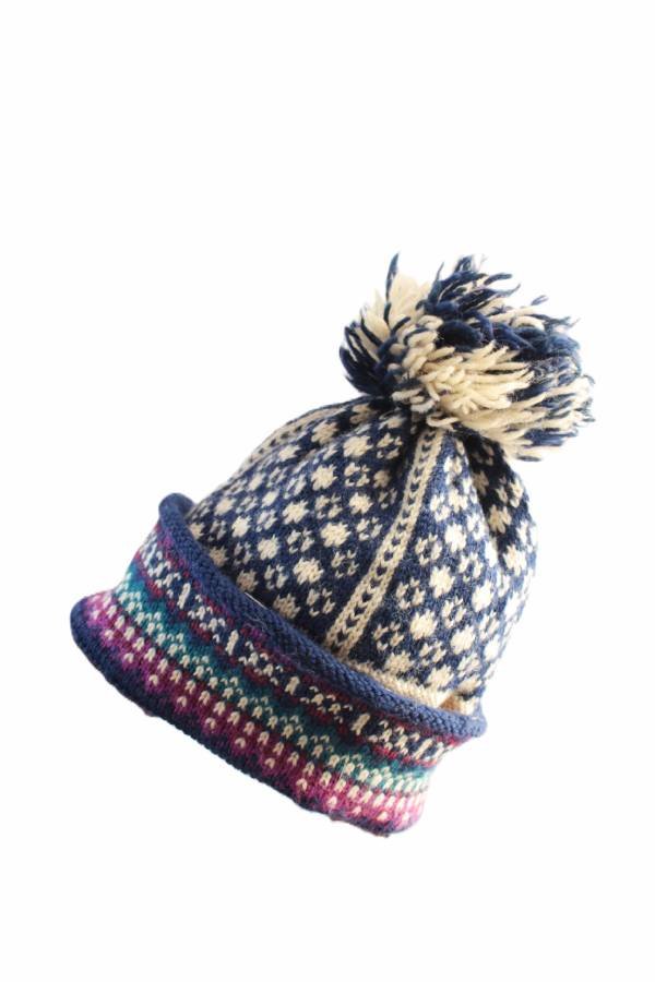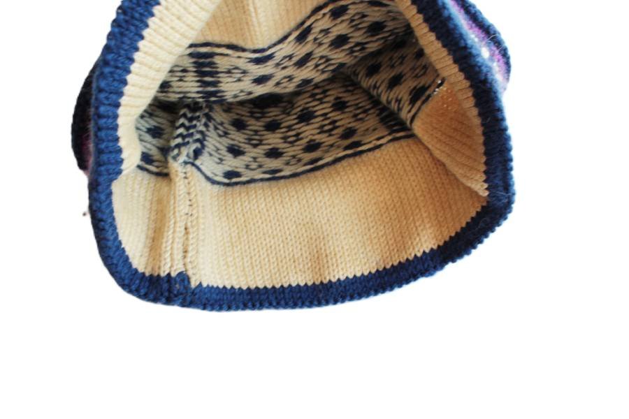 Ciepła czapka vintage z wełną, z fantazyjnym pomponem. Dodatkowe ocieplenie na wysokości uszu.