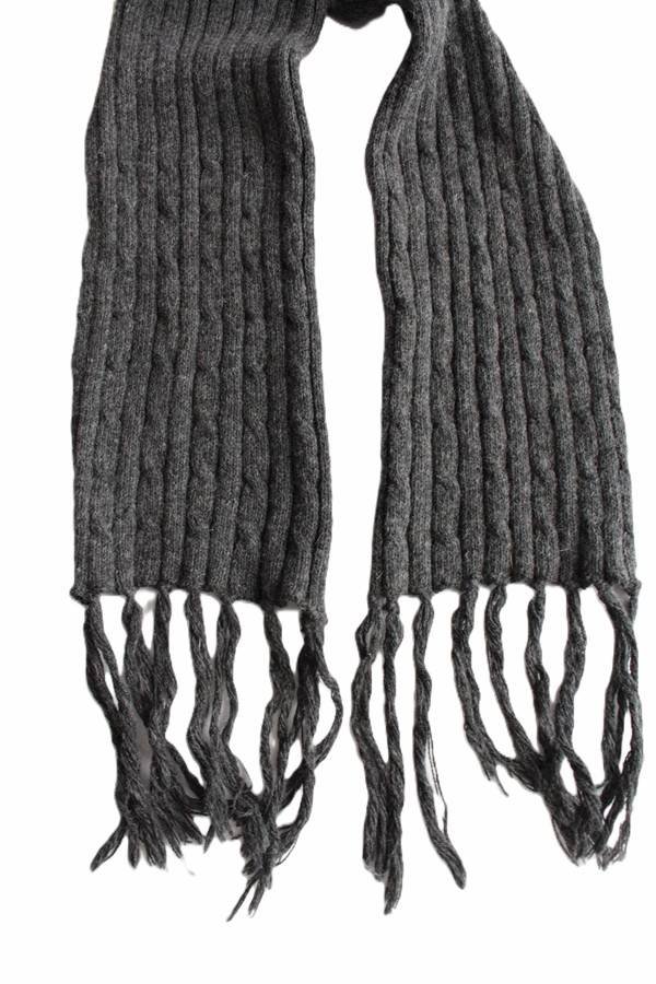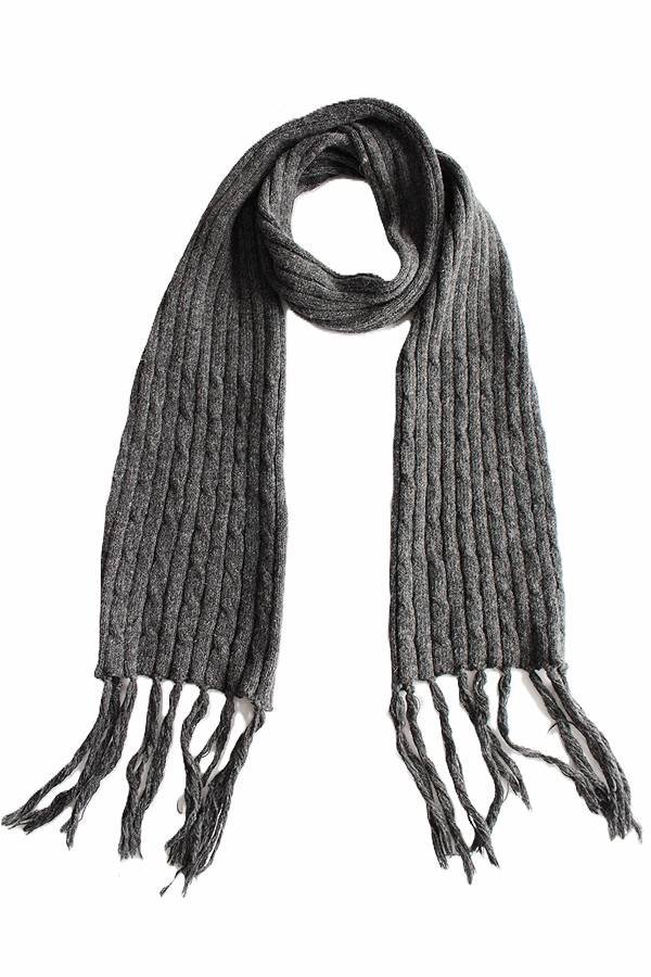 Ciepły szal vintage w kolorze grafitowym, w połowie wykonany z wełny.