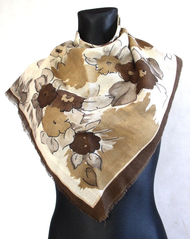 Delikatna chustka 100% wełny.Brzegi wykończone krótkimi frędzlami.Stan bardzo dobry-jedno zaciągnięcie.Długość boków 78 cm.Nie gryząca.