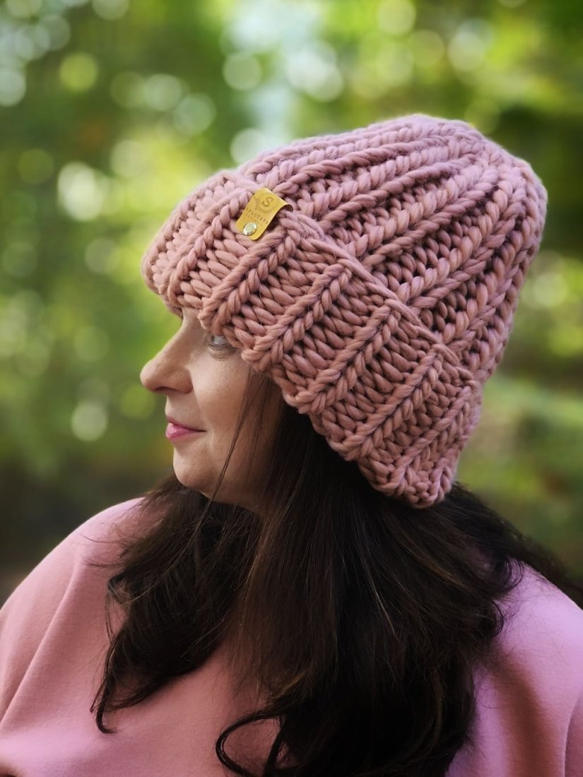WEŁNIANA CZAPKA Z WEŁNY PERUWIAŃSKIEJ WOOLY RETRO RÓŻ