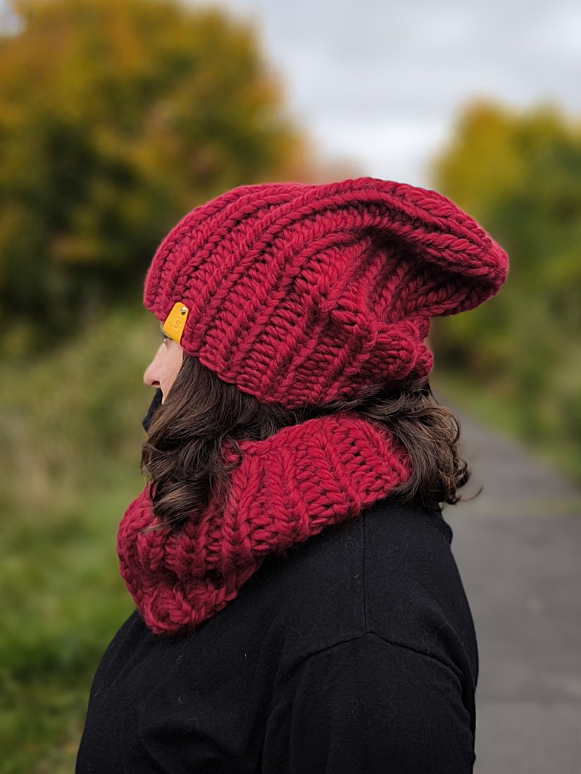 czapkę możesz nosić z zawinięciem oraz jako długą czapkę z opadającym tyłem.