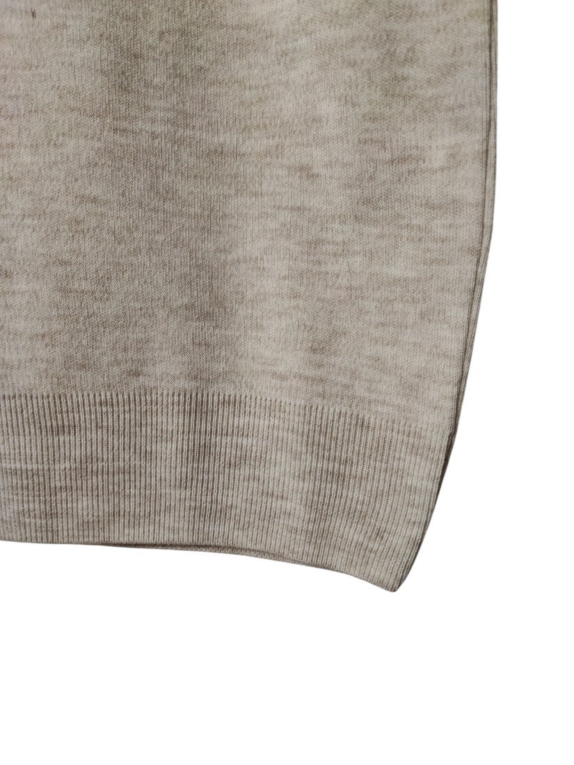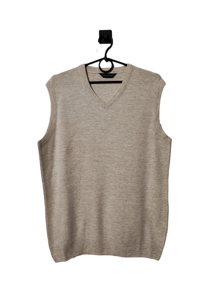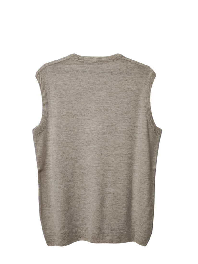 Minimalistyczna kamizelka dzianinowa Selantino w jasnym, neutralnym odcieniu beżu. Klasyczny dekolt w serek, czysta forma i luźny krój sprawiają, że to idealna baza do warstwowych stylizacji – solo, na koszulę albo pod marynarkę.