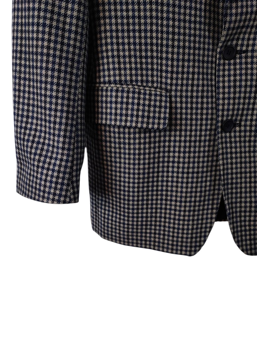 Ponadczasowa marynarka vintage w klasyczną pepitkę w odcieniach granatu i beżu. Dłuższy fason, eleganckie klapy i prosty krój inspirowany tailoringiem lat 90.