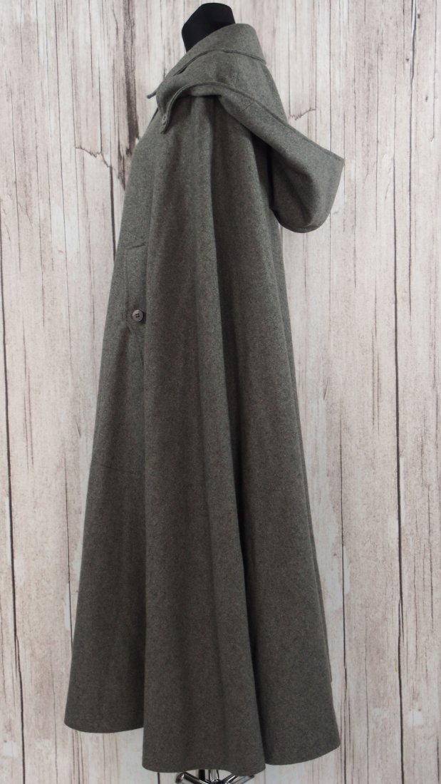 Piękna wełniana peleryna marki Jensen Coat Hearing Denmark. Te otwory jak kieszenie to