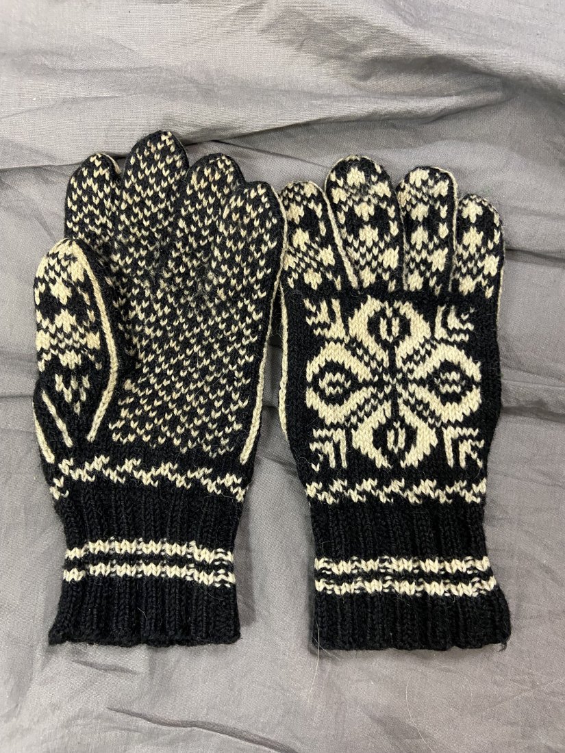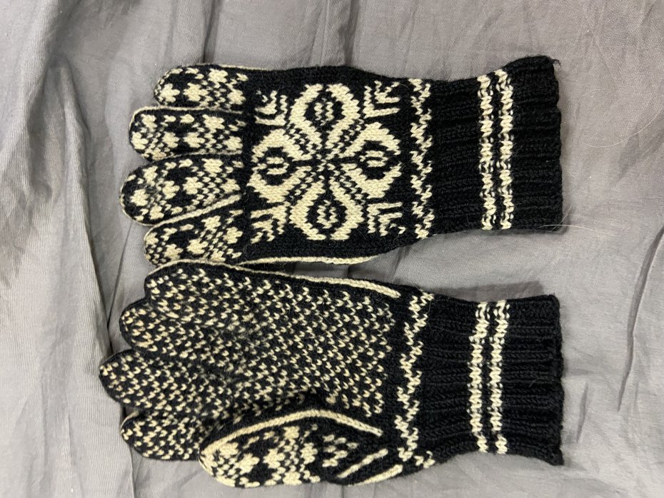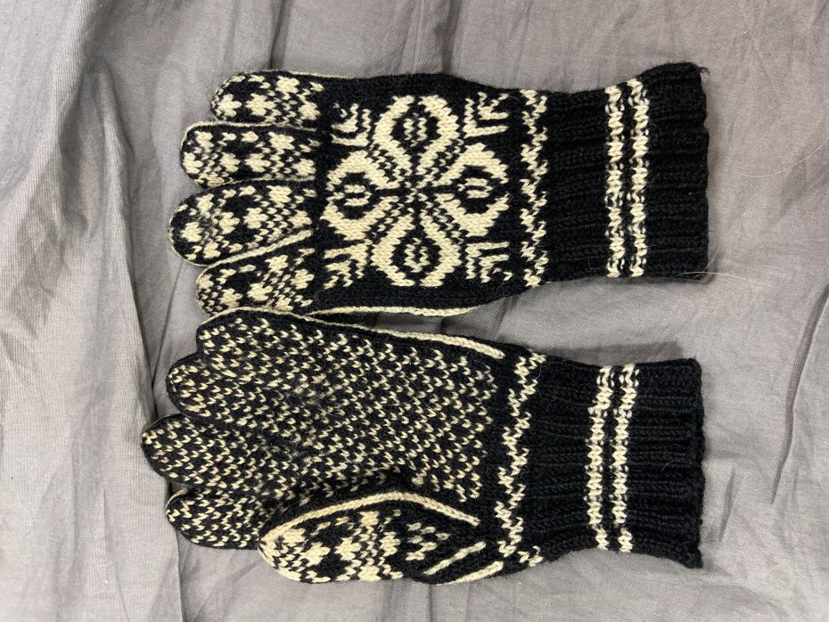 Wełniane pięciopalcowe ręawiczki. W palcach grubsze by super grzały.