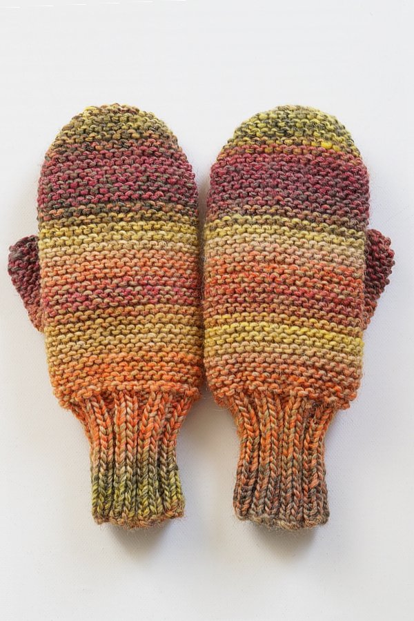 Rękawiczki z jednym palcem wykonane z wełnianej włóczki nierównomiernie cieniowanej,