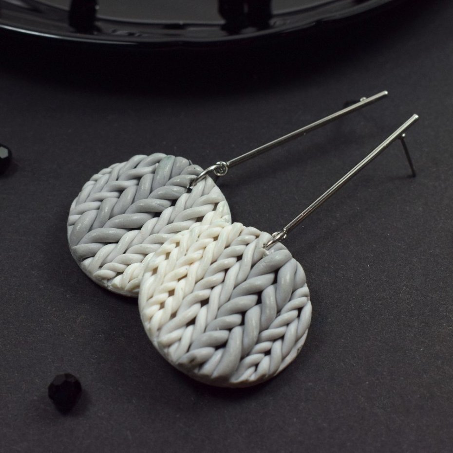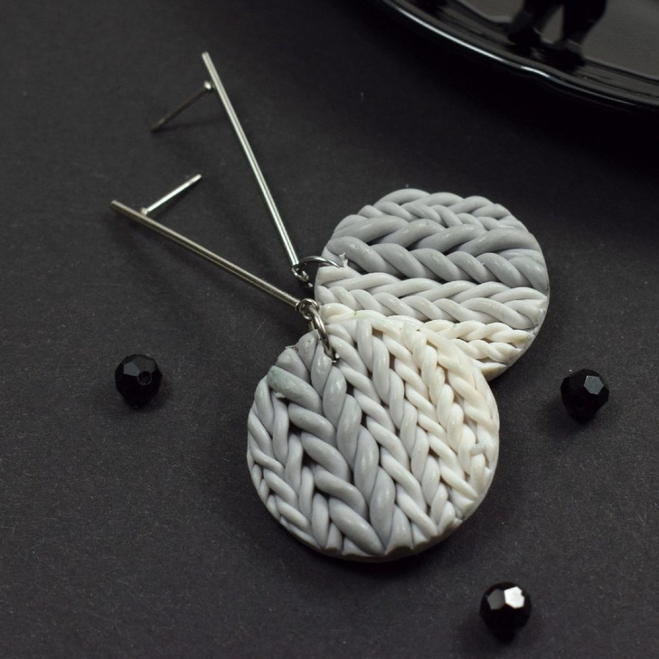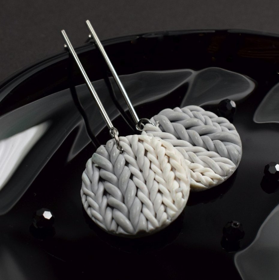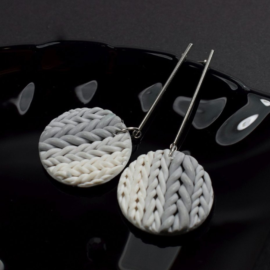 Przepiękne i niezwykle oryginalne kolczyki w odcieniach szarości i bieli. Ich centralny element powstał ręcznie z trwałej glinki polimerowej - lekkiej, odpornej na uszkodzenia, zachowującej trwałość i estetykę mimo upływu czasu.