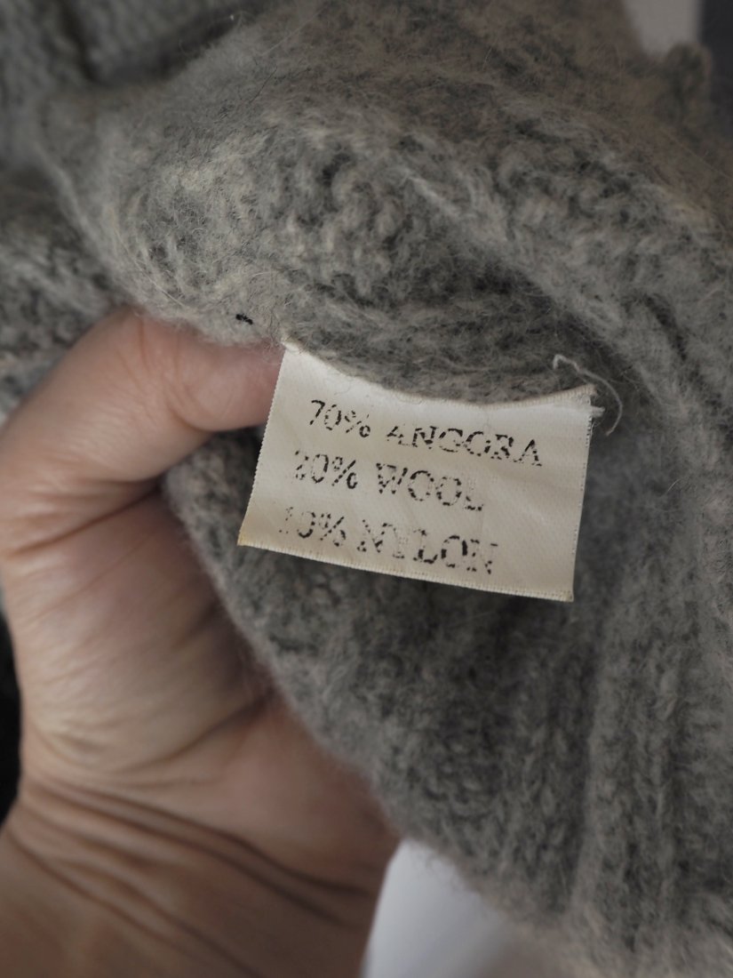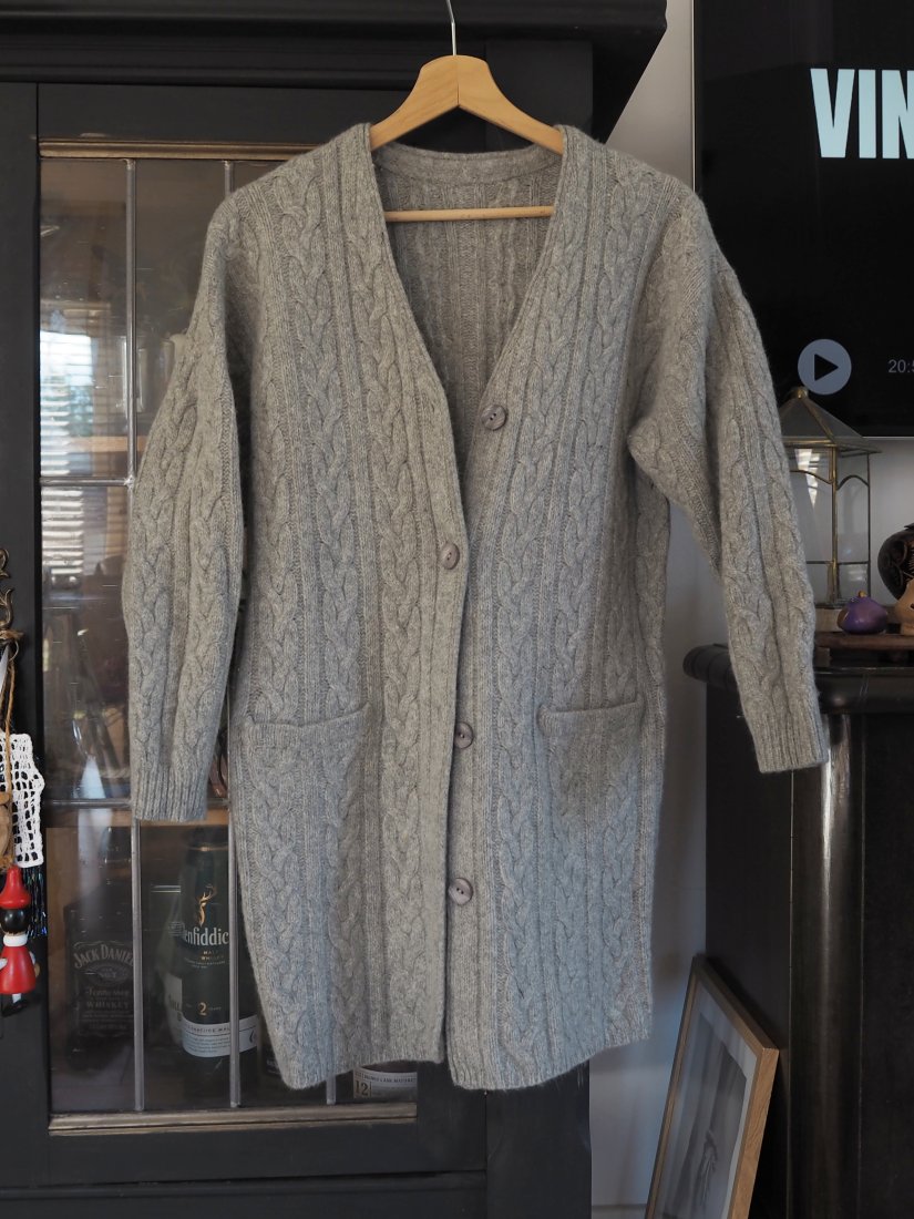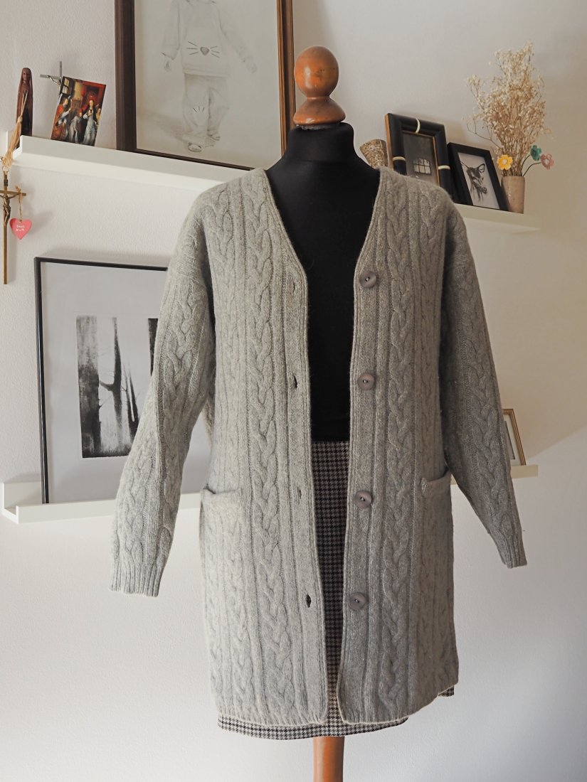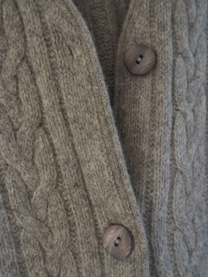 Wełniany ciepły o grubym splocie z angory kardigan sweter na jesień i zimę