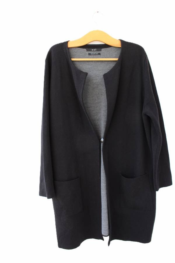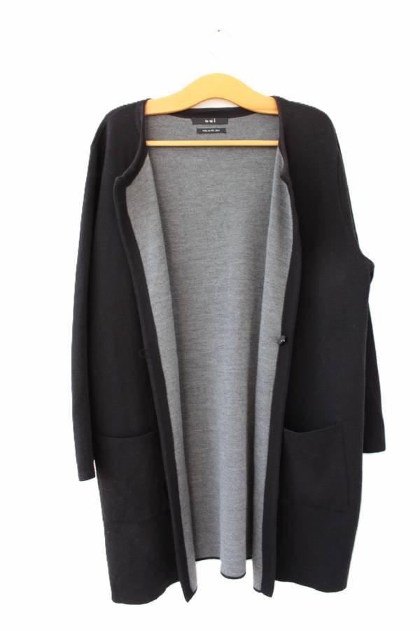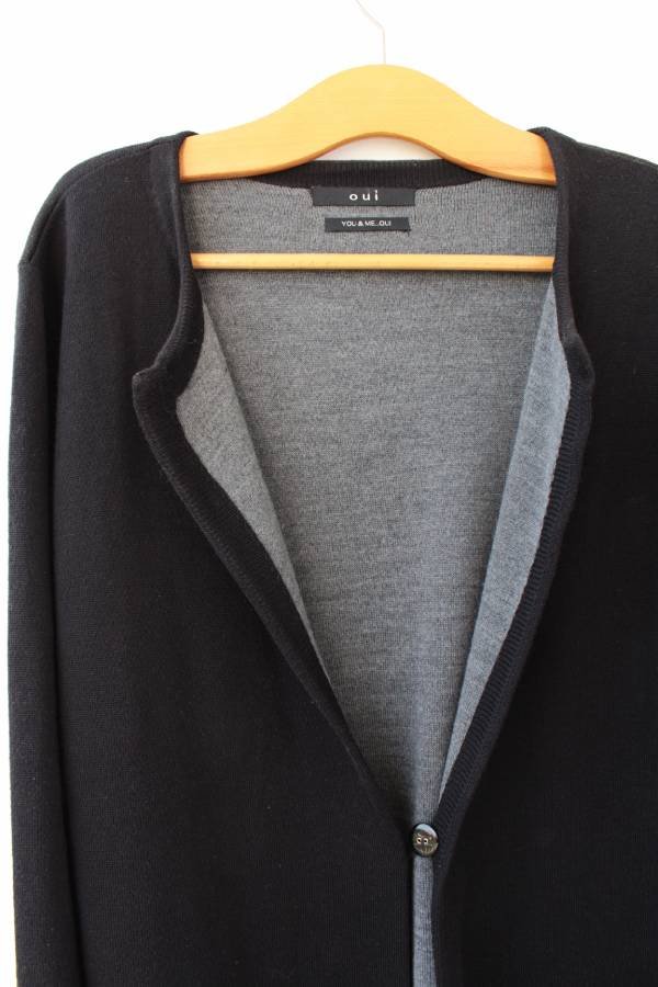 Dłuższy elegancki kardigan vintage plus size w kolorze czarnym. Można nosić na rozpięto lub zapięty na 1 guzik.