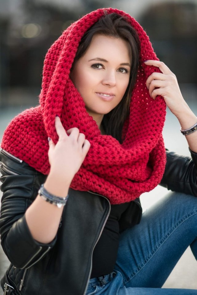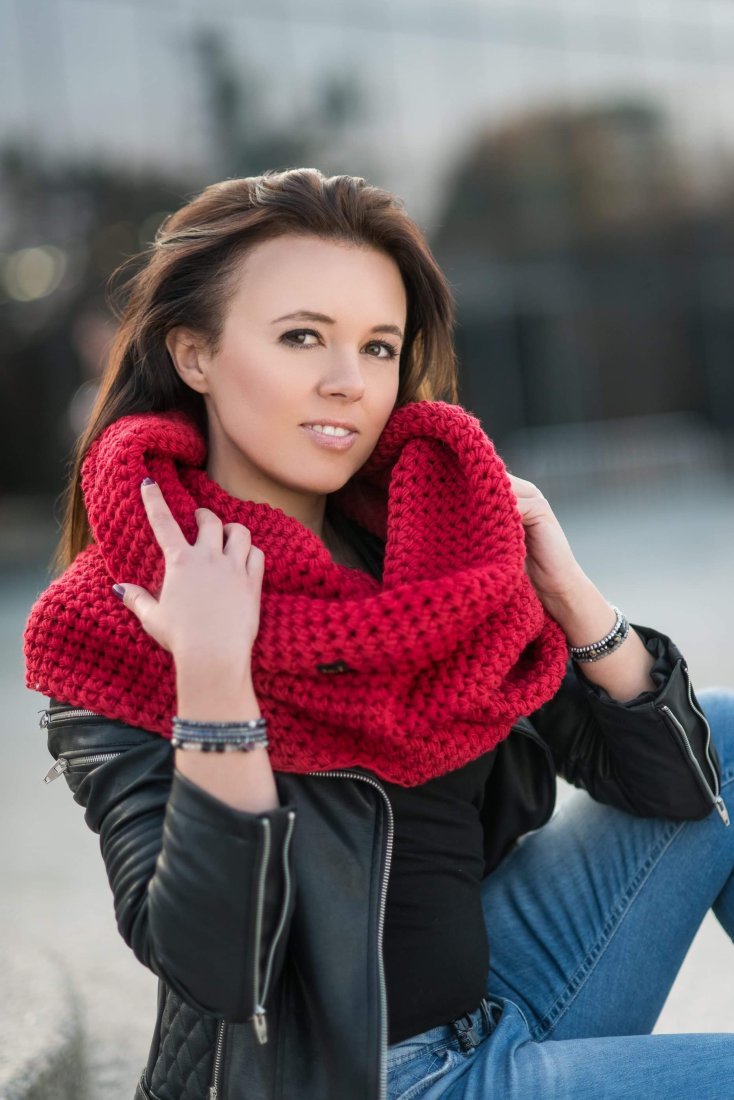 Oversizowy komin / otulacz w pięknym odcieniu nasyconej czerwieni, wykonany ręcznie z doskonałej jakościowo wełny, miękkiej i niegryzącej. Wyjątkowy dodatek dla wyjątkowej kobiety. Obszerny i ciepły, o specjalnym fasonie umożliwiającym różne stylizacje. Może być noszony jako ozdobny komin, kaptur albo otulacz na ramiona. Bardzo polecany przez użytkowniczki.