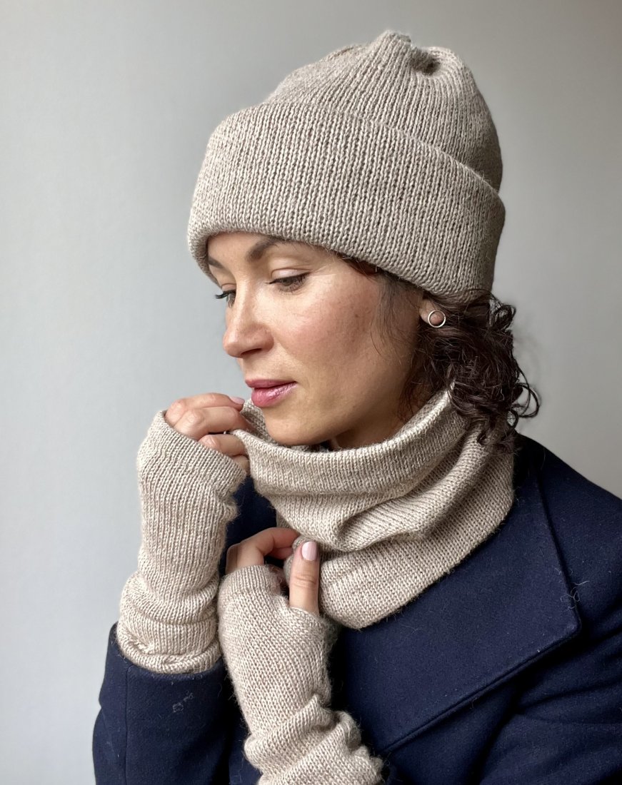 Tagi: #komplet zimowy damski, #rekawiczki bez palców, #wełniana czapka, #wełniany szalik