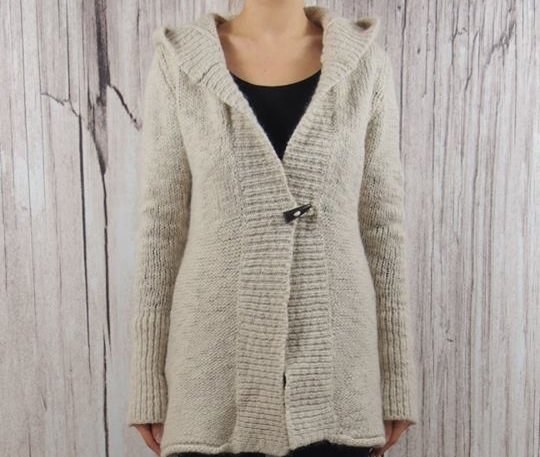 Z kapturem. 50% wełna, 30% akryl, 20% nylon.