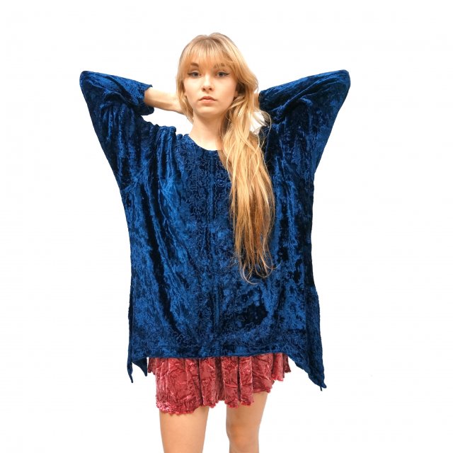 Oversizeowy nietoperz z granatowego weluru haftowanego z przodu.