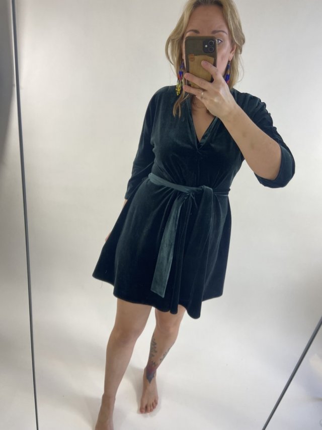 Welurowa sukienka z zary. W kolorze głębokiej butelkowej zieleni.
